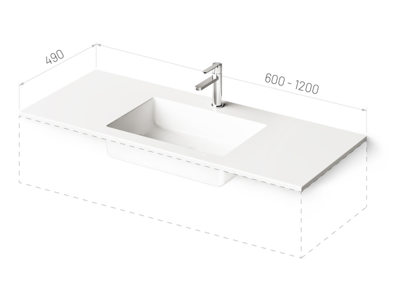 Akmens masės praustuvas PAA Loto nestandartinio dydžio 600-1200 mm x 490 mm, baltas ILOT600-1200/00
