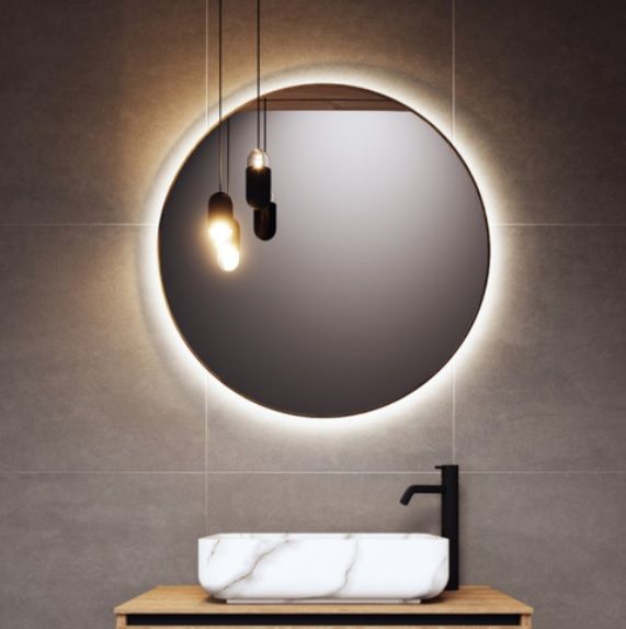 Apvalus veidrodis RIHO Shield su apšvietimu 80x80 cm ir sensoriniu jungikliu