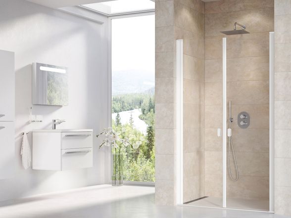 Dušo durys Ravak CSDL2 110, balta matinė+stiklas Transparent, 0QVDCE0LZ1