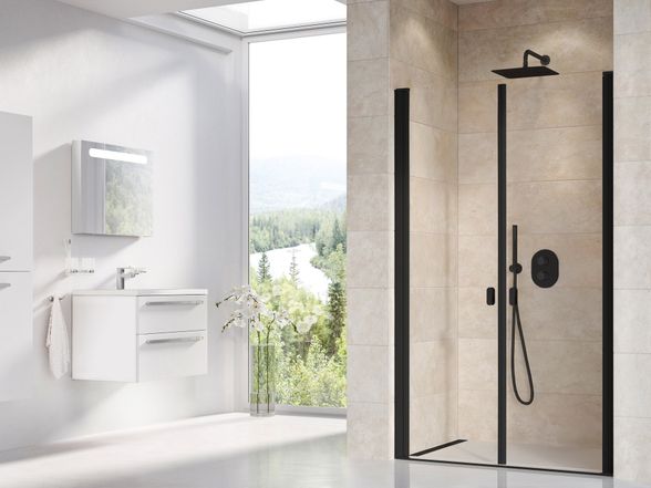 Dušo durys Ravak CSDL2 110, juoda+stiklas Transparent, 0QVDC30LZ1