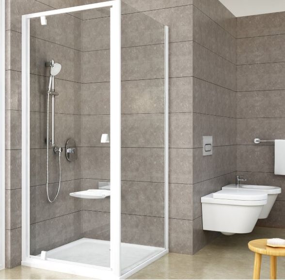 Dušo kabina Ravak Pivot PDOP1-90+PSS-90, balti profiliai, skaidrus stiklas
