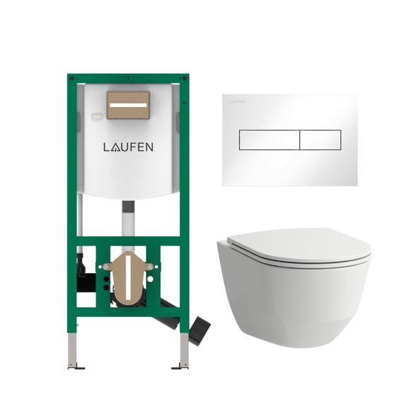Komplektas: rėmas Laufen INEOLINK su balta plokštele ir unitazas Laufen Pro New Rimless