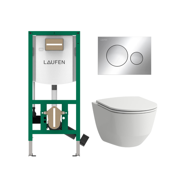 Komplektas: rėmas Laufen INEOLINK su chromine plokštele ir unitazas Laufen Pro New Rimless