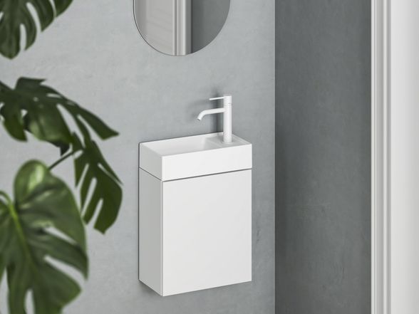Praustuvas Ravak Veda Slim 40 Mini, su skyle maišytuvui, baltas matinis, XJX0E240002
