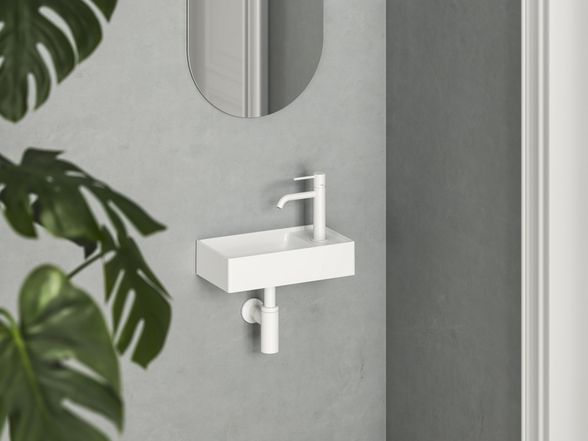 Praustuvas Veda Ravak Wall 40 D Mini, su skyle maišytuvui, baltas, XJXP1240000